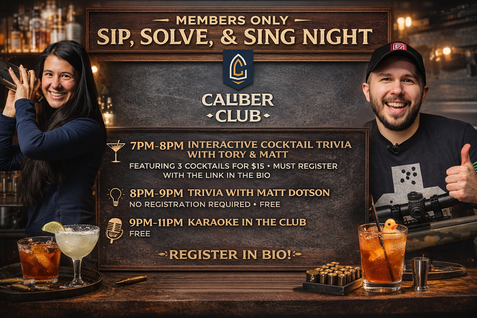 From 7PM–8PM, jump into classic trivia with Matt Dotson—free to play, no sign-up required. Winner takes home a $25 Caliber Club Gift Card.