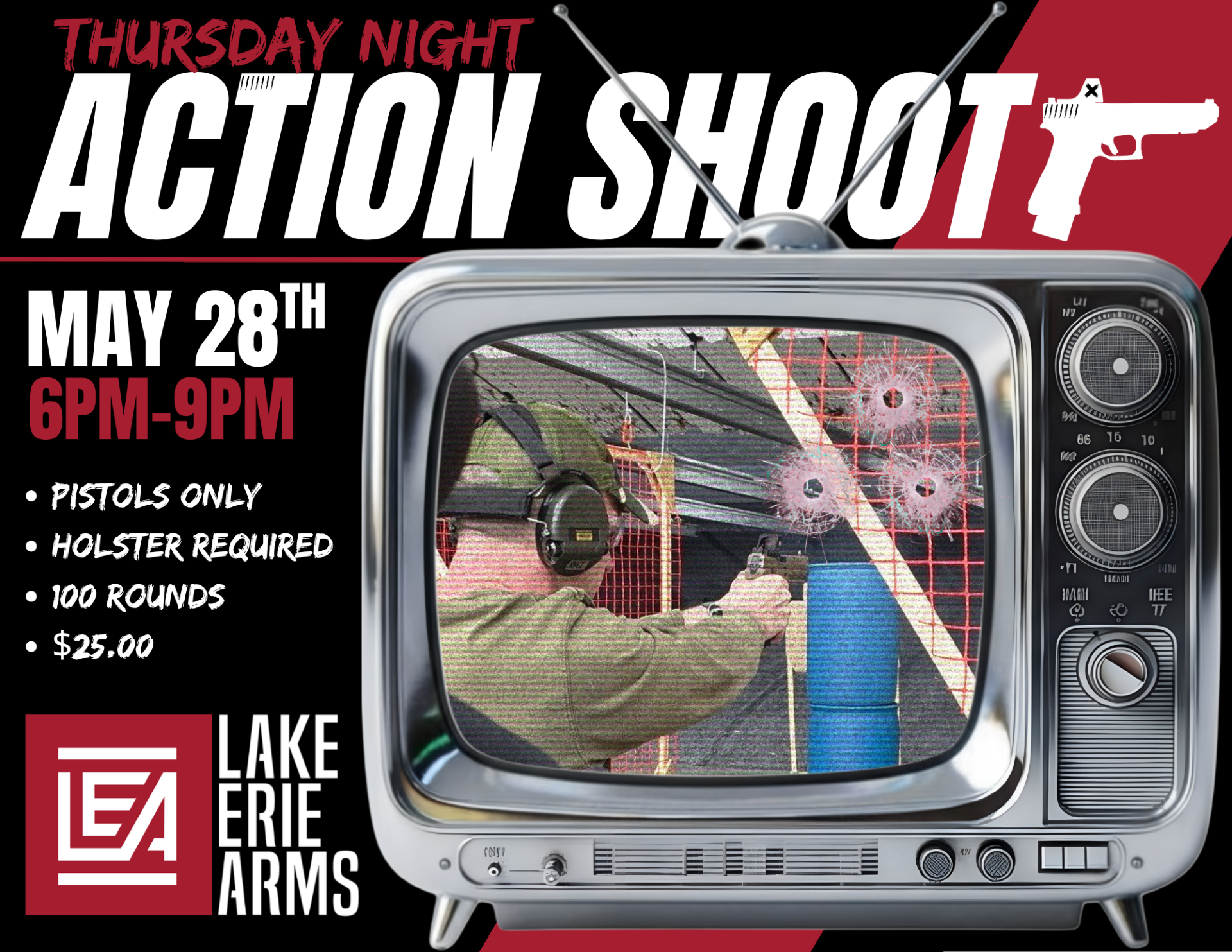 Put your skills to the test and satisfy your insatiable craving for some run'n'gun high speed action at our next Thursday Night Action Shoot at Lake Erie Arms!